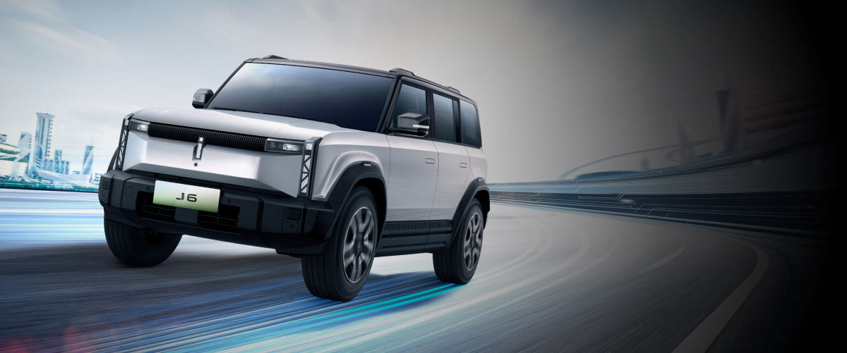 Chery yakin bahwa Chery J6 akan membuka pintu menuju era baru SUV Offroad listrik. Dengan kombinasi sempurna dari kelincahan, teknologi canggih, dengan kualitas di setiap detail material dan keamanan yang komprehensif, Chery J6 siap membawa pengemudi dan penumpang untuk menjelajah dan mengekspresikan kebebasan, dan tetap penuh gaya.
